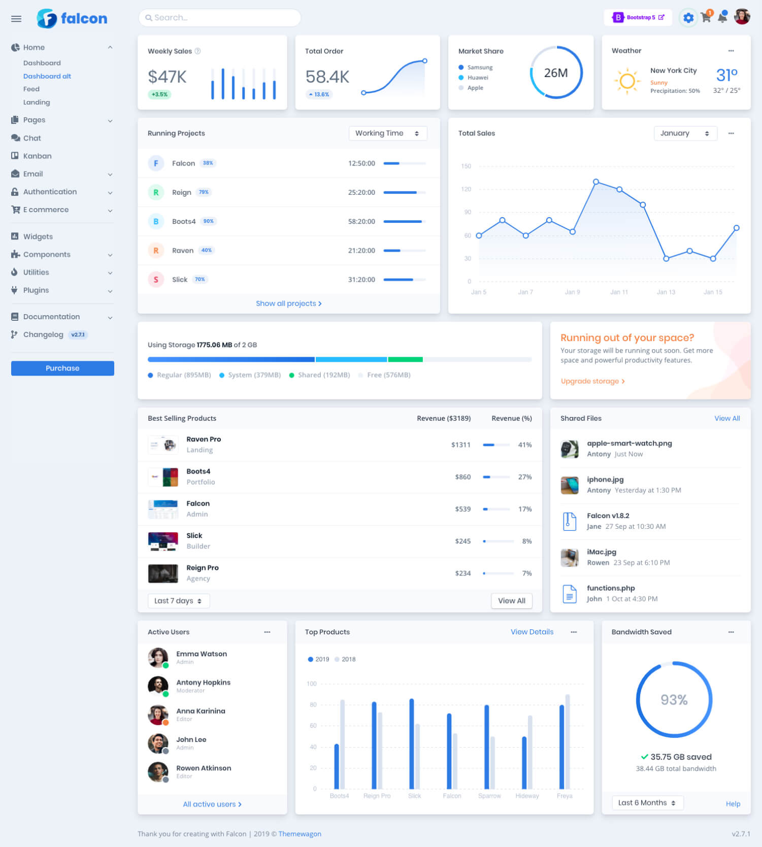 Built on top of Bootstrap 5, super modular Falcon provides you gorgeous design & streamlined UX for your WebApp.